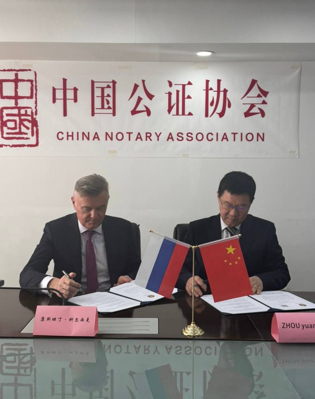 Нотариальное сообщество КНР представляли президент Ассоциации нотариусов Китая Чжоу Юаньшэн, генеральный секретарь ассоциации Сюн Фэй, заместитель генерального секретаря Ван Цзянь, представители отдела международных связей, отдела профессиональных вопросов и генерального секретариата Ассоциации нотариусов Китая.