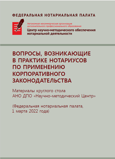 Вопросы, возникающие в практике нотариусов по применению корпоративного законодательства: сборник материалов круглого стола АНО ДПО «Научно-методический Центр», под ред. М.Н. Илюшиной, 2022